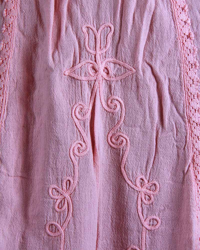 Each women's piece is finished with pure cotton cord appliqués, similar to macramé. With this cord, artisans create flowers, natural motifs, and delicate decorations on the fabric. These decorations are complemented by 100% cotton lace inserts, openwork bands, crochet trims, and details that make each piece unique, with a feminine and boho-chic aesthetic typical of Peru.