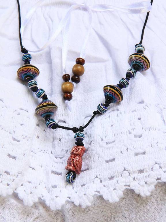 - Ethnic style handcrafted jewelry made with natural materials: coconut, stones, shells, seeds, metal, silver, horn, ceramic beads, ethnic fabric.